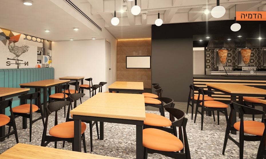 רישוי, תכנון ועיצוב פנים של מסעדה שווארמה שמעוני, הליך הליווי הכולל ליווי ואישור מקדמית מול משרד הבריאות, תכנון בהתאם לתקנות משרד הבריאות הכל נעשה ונחתך בשטח העסק החל מהסלטים, הבצק ללאפה, הכנת השיפודים, תוך מתן דגש לתהליך המכירה שעובר הלקוח ומגבלות הנכס, התוצאה יצא משגעת ומזמינה את הקהל לשבת בתוך שטח העסק ולהנות ממנה שווארמה עם עמבה :-)